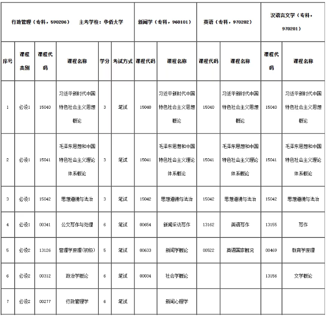 三、考生申请行政管理(专科,590206)专业毕业,须符合该专业的课程设置、课程门数、总学分等要求。已经通过的合格的课程成绩不得重复使用。